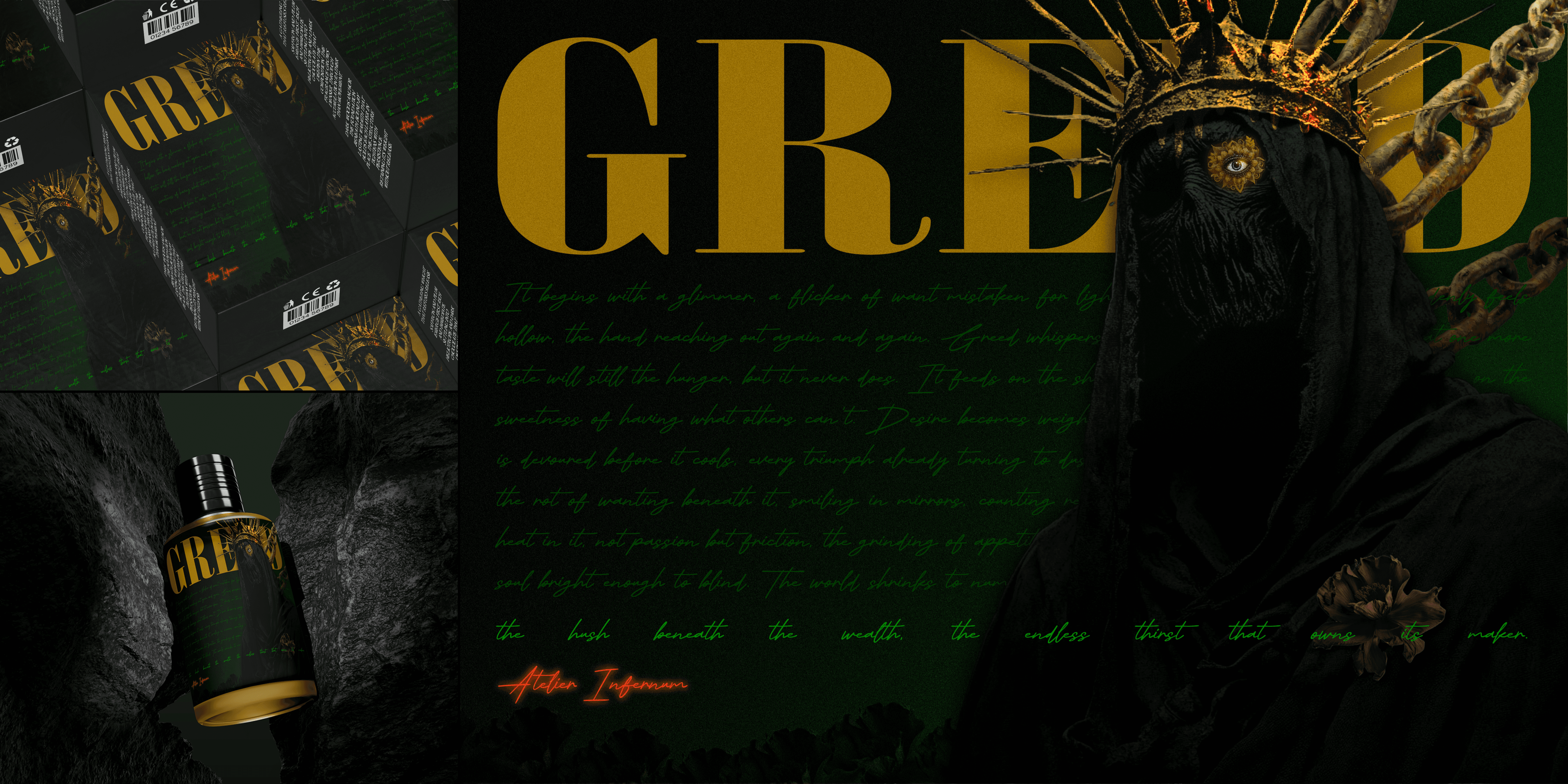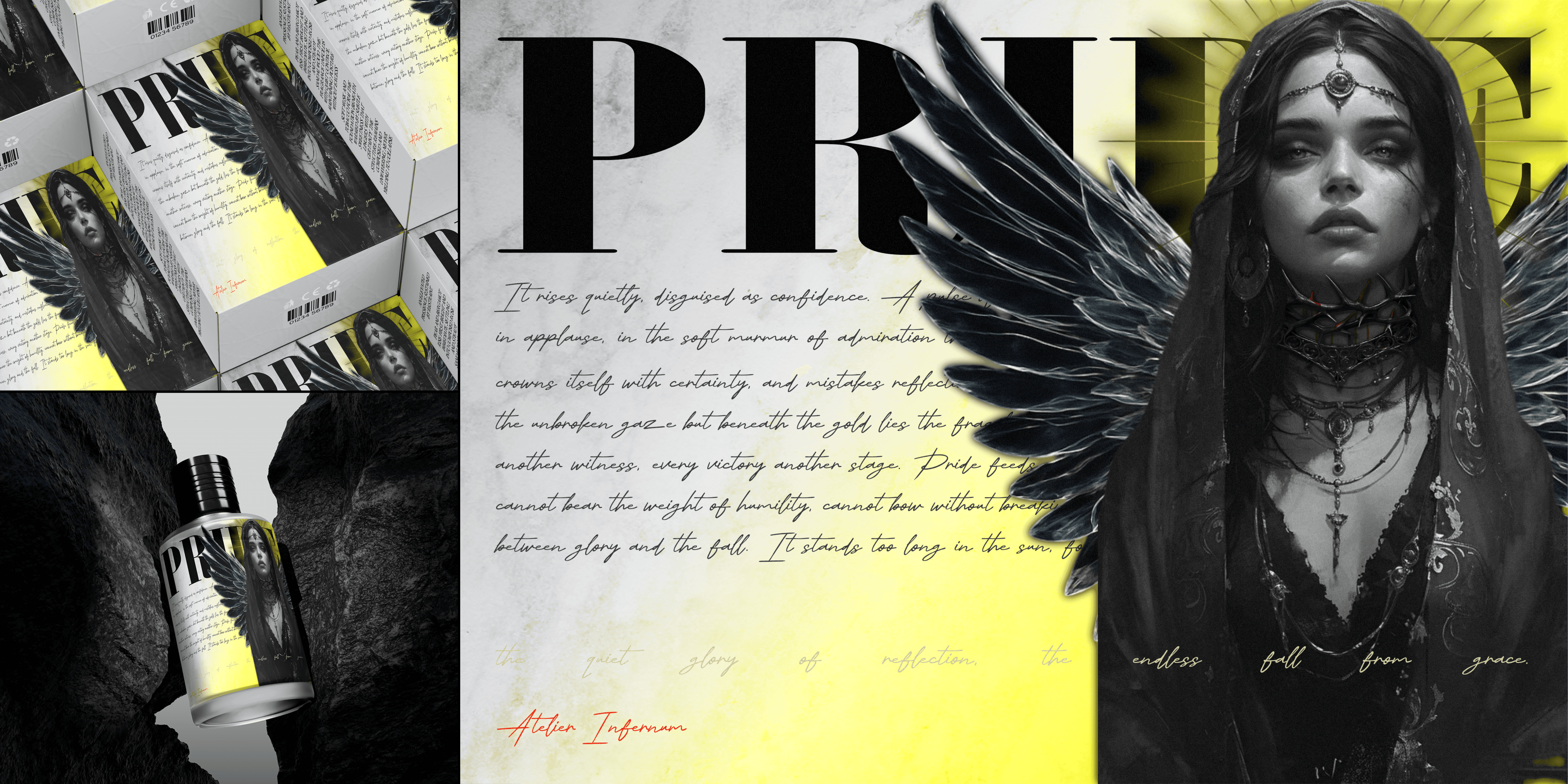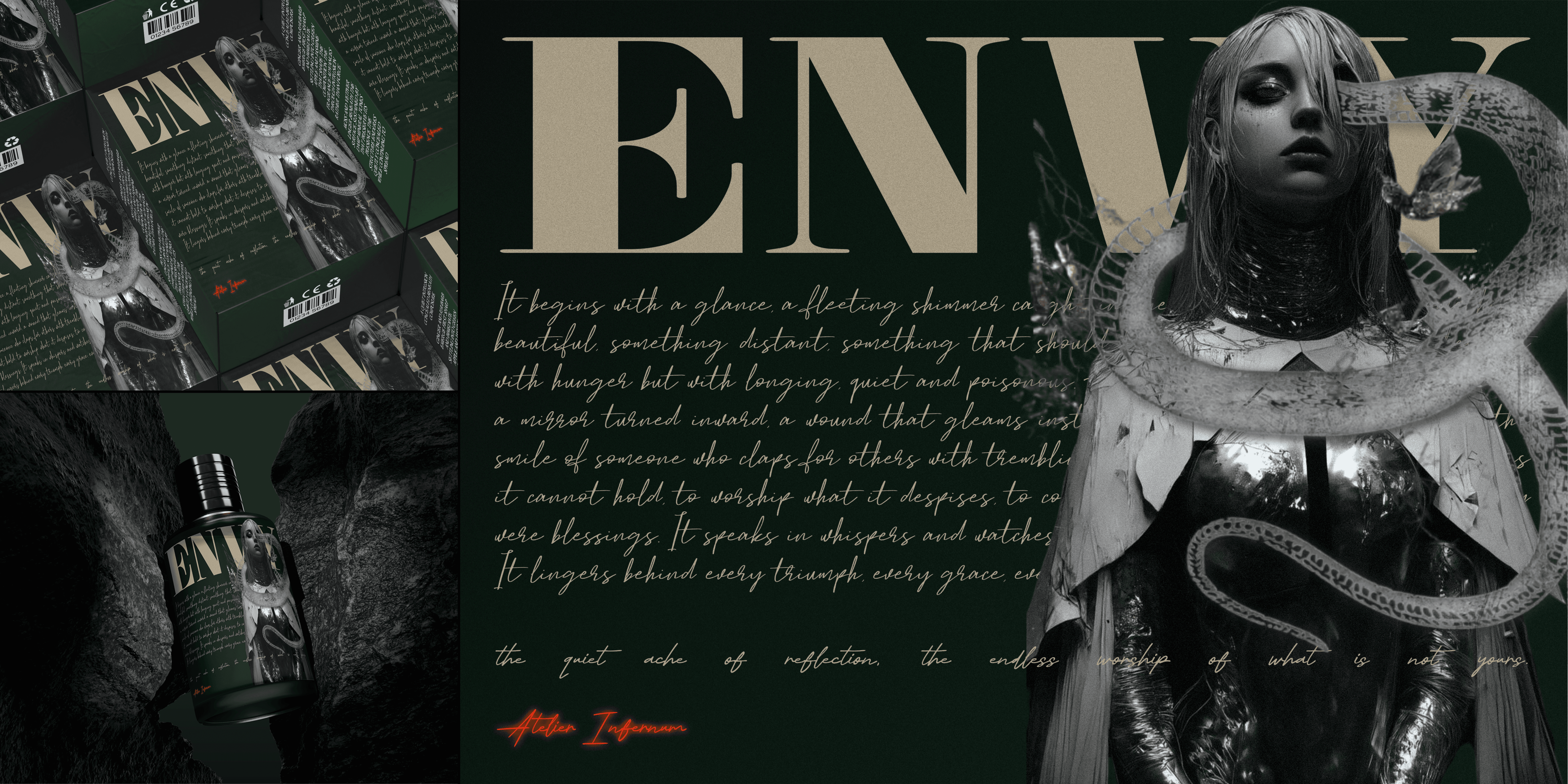 Atelier Infernum is a narrative-driven brand identity built around the seven deadly sins.